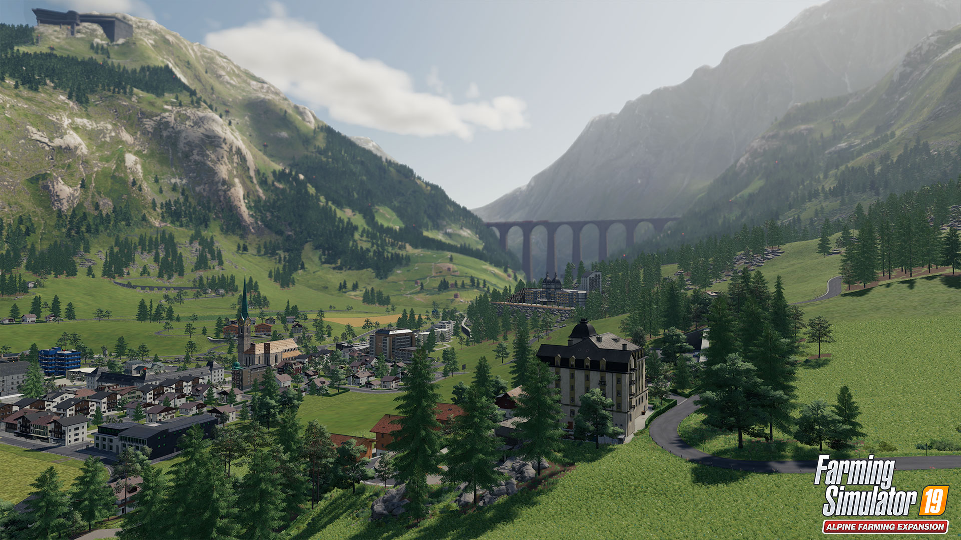 Farming simulator 19 features two maps, Felsbrunn in Europe and Ravenport in the USA as part of the base game. A third map Erlengrat was included in the Alpine Farming Expansion.